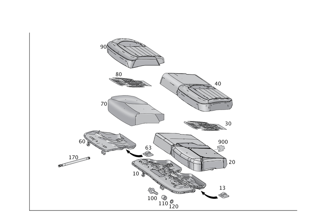 Cushion frame to seat frame base, left.